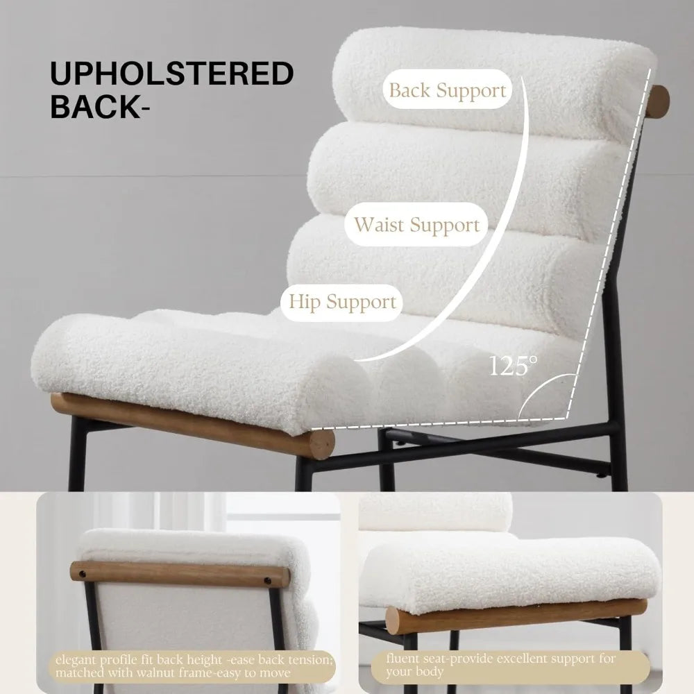 - ERGONOMIC BACK: The upholstered backrest is covered with soft sherpa and offers targeted support to middle back, reducing strain on the waist during long periods of sitting in 125-degree recline. Finished with a sleek walnut wood frame, counter stool blends ergonomic design with modern aesthetics, offering both stability and easy mobility for your home kitchen