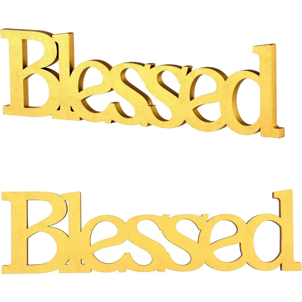 Blessed Letter Table Sign,Rustic Wooden Home Signs Decor (Gold)