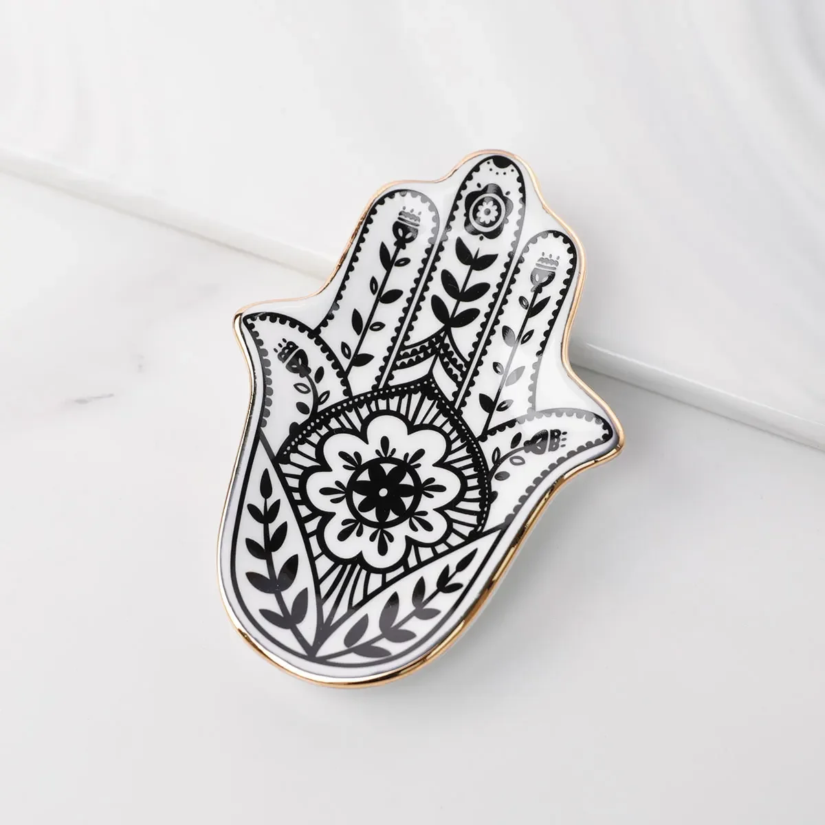 European Ceramic Jewelry Plate Accessory Plate Hand Small Jewelry Tray Decorative Plate Hamsa Hand Plate Decorative Craft Ornament