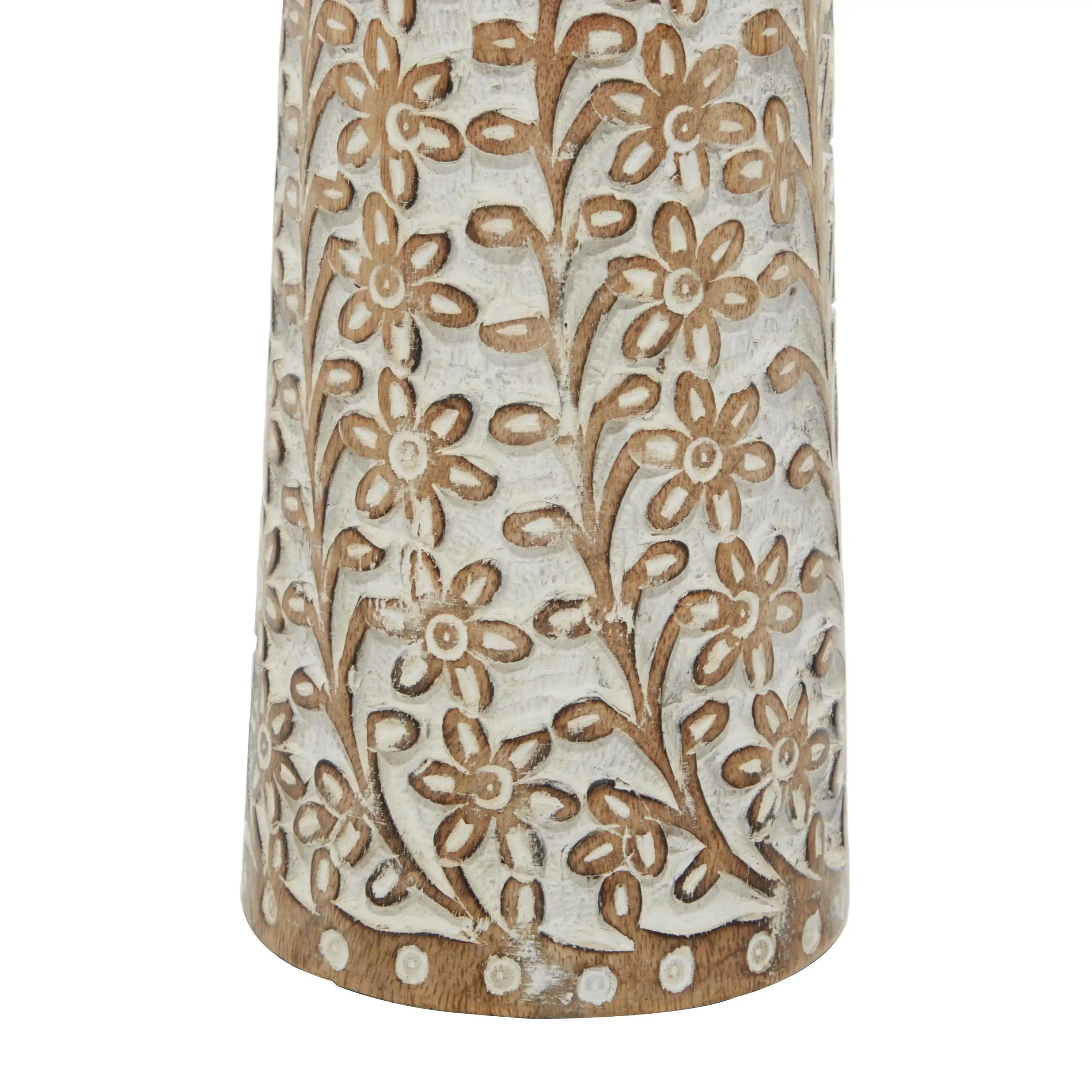 - Washed brown candle holders for centerpiece highlights a round shaped with floral carved patterns, adding an artistic touch to any setting